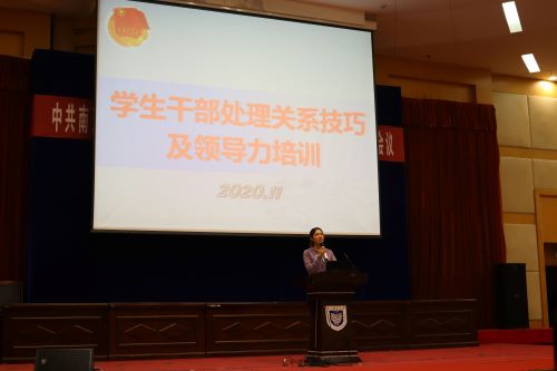 11月17日下午,welcome欢迎光临威尼斯公司第74期大学生菁英人才学校培训班理论课程如期在科技会堂二楼展开。本次课程中,华奕曦老师就学生干部处理关系技巧及领导力进行现场授课,菁英班全体成员到场参加培训。
