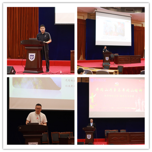 宣讲团成员们从井冈山战斗史、引兵井冈山的决策过程、引兵井冈山的理由及战略意义等方面,讲解了井冈山精神的精髓:坚定执着追理想、实事求是闯新路、艰苦奋斗攻难关、依靠群众求胜利。并讲述了三湾改编及古田会议两件在我党、我军历史上的重大事件,阐述了毛泽东思想的形成过程。宣讲团成员们通过一张张图片、一段段文字,带领同学们回顾井冈山斗争,学习井冈山精神,引导同学们把理想信念作为照亮前路的灯,以实干践行初心,用担当承载使命,让青春在不懈奋斗中绽放绚丽之花。