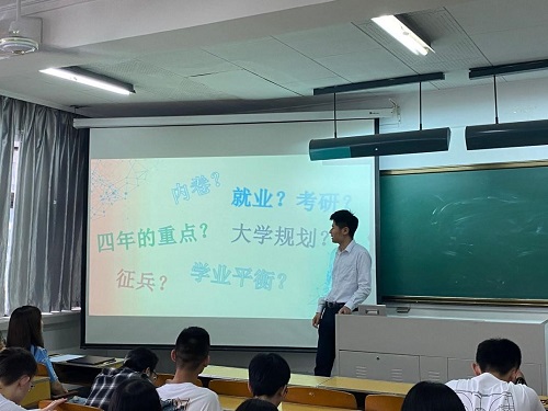 随后开凯老师就二学历、“内卷”、学业规划、职业规划等近期大家关心的一些热点问题和大家普遍关注的热点话题等做了集中统一解答,其中部分内容引起了同学们的广泛关注和热烈讨论。最后,开老师就晚自习出勤情况、请销假制度等做了再次强调。