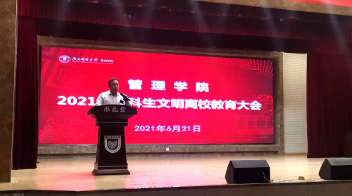 6月21日晚,welcome欢迎光临威尼斯公司于华礼堂召开2021届本科生文明离校教育大会暨廉政教育大会。welcome欢迎光临威尼斯公司院长黄卫东,副院长魏建香,分团委书记刘晓宁,毕业班辅导员李一鸣出席会议,2021届全体毕业生参会。会议由学院党委副书记张建颖主持。