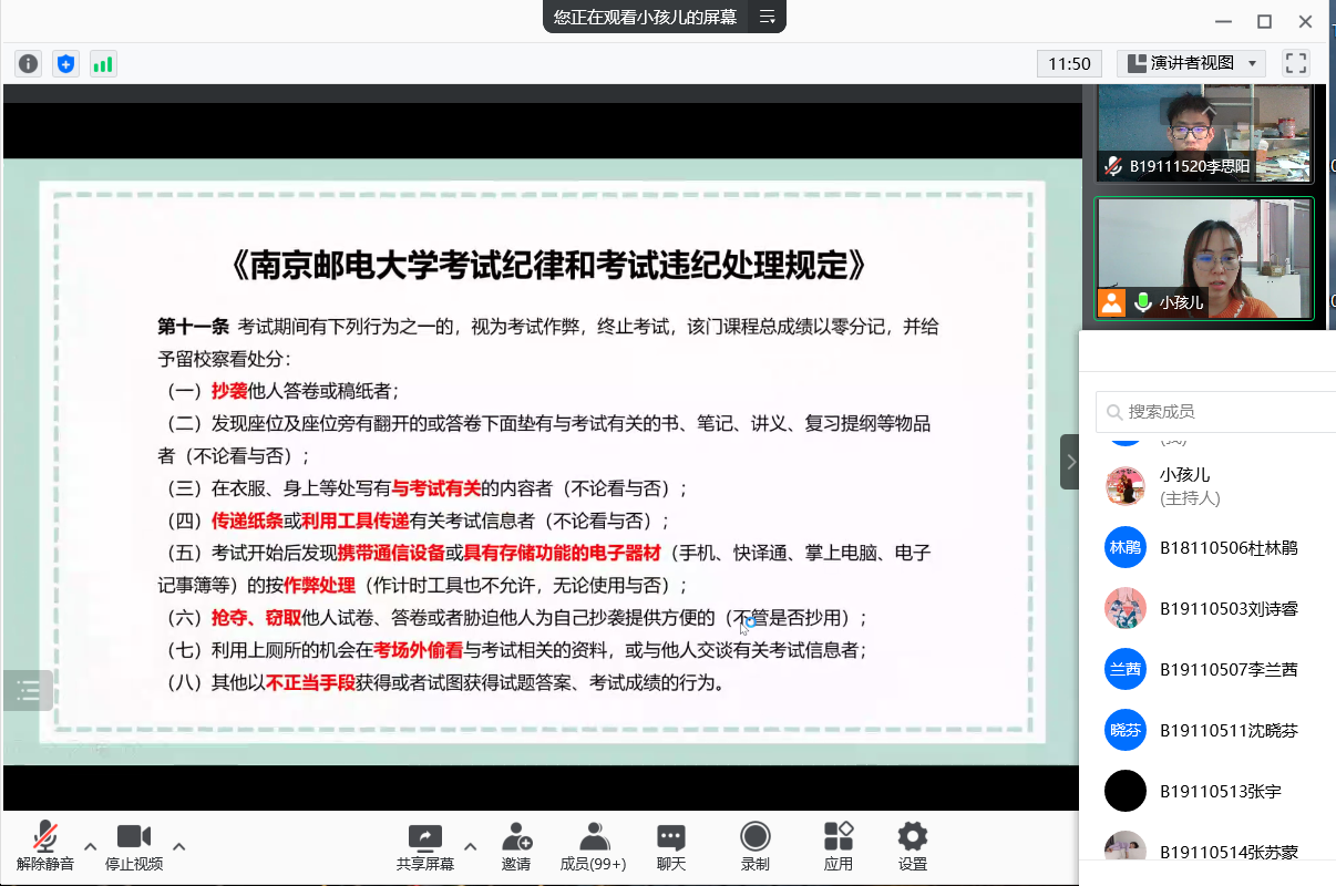 12月15日下午,welcome欢迎光临威尼斯公司本科2019级市场营销、财务管理、信息管理与信息系统专业年级大会通过腾讯会议以线上方式举行。本次大会由本科2019级辅导员宋晓含老师主持,3个专业全体学生参与。