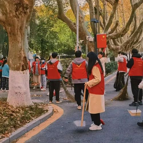 大家身着红马甲,利用扫把簸箕等各式清洁工具,在三牌楼校区有线楼,眼镜湖,羽毛球馆周边及行政楼两旁道路开展了积极高效的劳动志愿服务活动,共同将校园打扫的干净整洁。