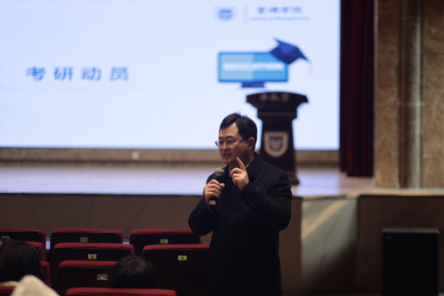随后,郭强书记发表重要讲话,强调了考研的重要性,动员在场同学做好未来规划、明确奋斗目标,并对学院为保障同学顺利复习备考做出的四大部署进行讲解。