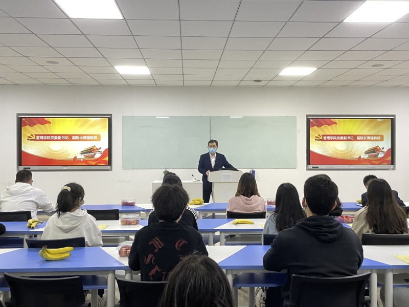 郭书记强调,在学校、学院领导的关怀下,在广大师生的共同努力下,三牌楼校区的校园环境、硬件设施、校园文化氛围得到了长足的改善,作为优秀学生代表、主要学生干部,大家要讲政治、顾大局、懂奉献、肯担当,在规划好自身职业生涯发展的同时,也要为班级同学、学生组织(社团)同学做出表率,继续努力营造积极向上、风清气正的校园文化氛围,践行“信达天下、自强不息”的南邮精神和“崇信尚能、善管明理”的学院院训,为学院、学校的发展继续贡献青春力量。