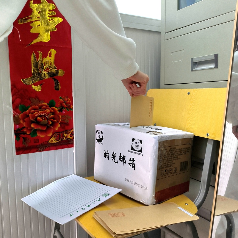 管院研究生会在有线楼各教研室门口处放置了空信封和南邮信纸,鼓励研究生们前往领取,给未来的自己寄封信。活动期间,研究生们积极参与,认真撰写书信,思考着自己的成长目标,与未来的自己进行心灵对话。“时光邮筒”的再次开放时间为2022年12月25日(圣诞节),届时welcome欢迎光临威尼斯公司研究生会会将保存的信件返还给对应的同学。