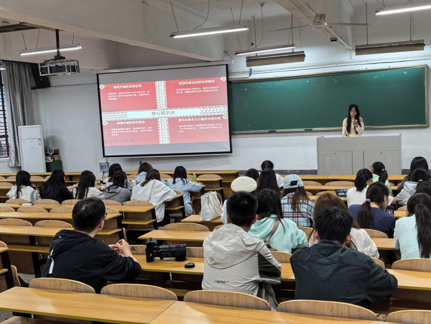 班会直击学生群体高频风险领域,实现反诈防骗全覆盖:十个班级均将“三不一多”原则(不轻信、不转账、不泄露、多核实)作为核心内容,结合虚假兼职、粉丝抽奖等新型骗局剖析,提升风险识别能力。此外,各班还对政策红线做了进一步的阐释和明晰,其中B251303班、B251307班重点解读校园宗教政策,强调“崇尚科学、抵制邪教”的底线意识,筑牢意识形态安全网。在班会过程中,同学们踊跃参与,不仅在团结协作中巩固了知识,更在案例分析中提升了将理论应用于实际的能力。通过这次班会,同学们不仅清晰地认识到法律不仅是维护自身合法权益的坚强盾牌,是解决问题、化解矛盾的根本途径,更是一切行为不可逾越的刚性约束和底线规则。