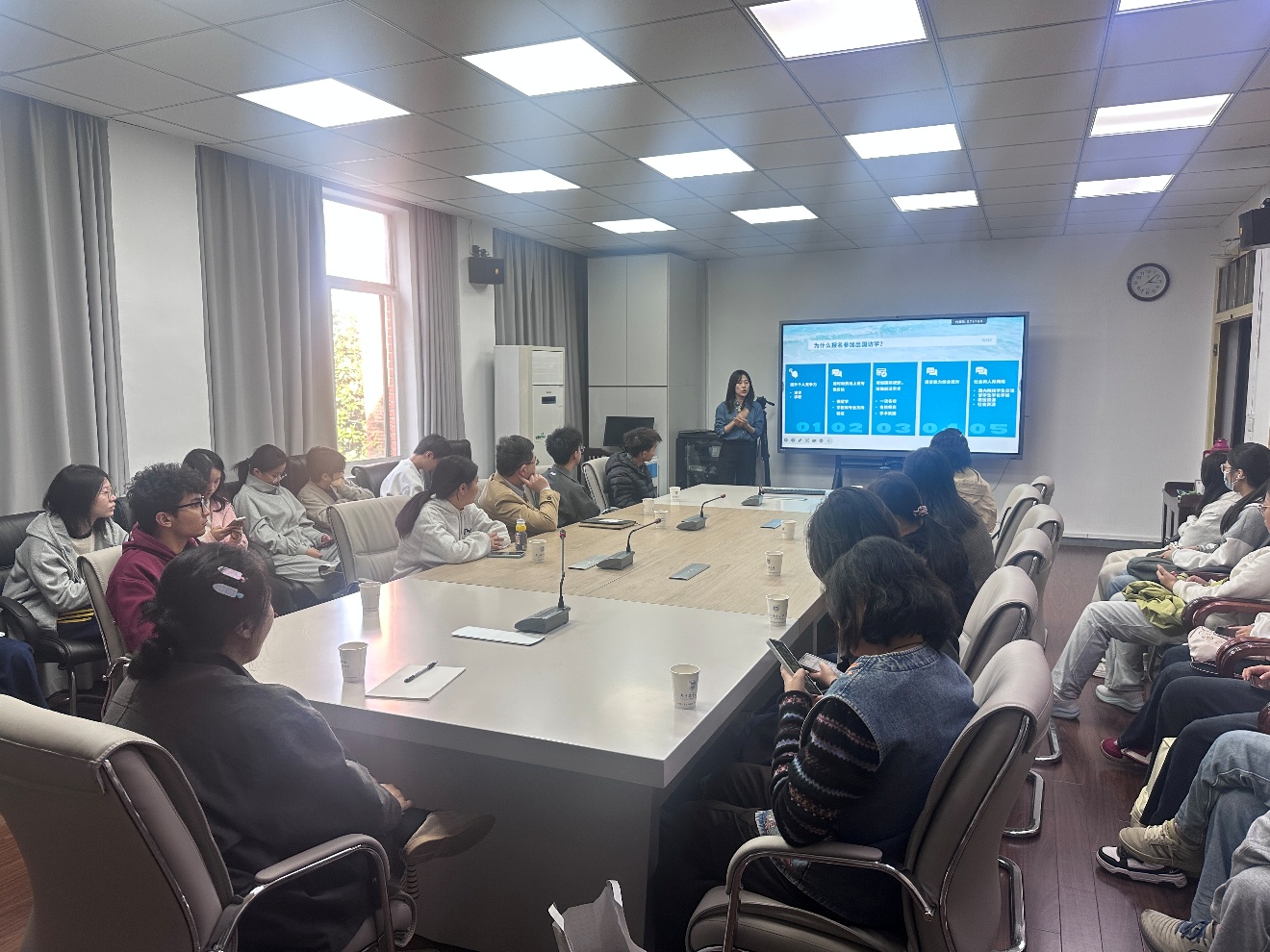 随后,国际合作交流处朱治亚老师从学校层面,对我校现行的海外访学政策、校级公派项目申请流程及奖学金支持等进行了全面解读,并鼓励同学们积极利用学校平台开拓国际视野。接着,两家合作机构的代表分别介绍了包括“剑桥领航计划”在内的寒暑假短期体验营和长期访学项目,展示了项目在提升科研背景和语言能力方面的独特优势。